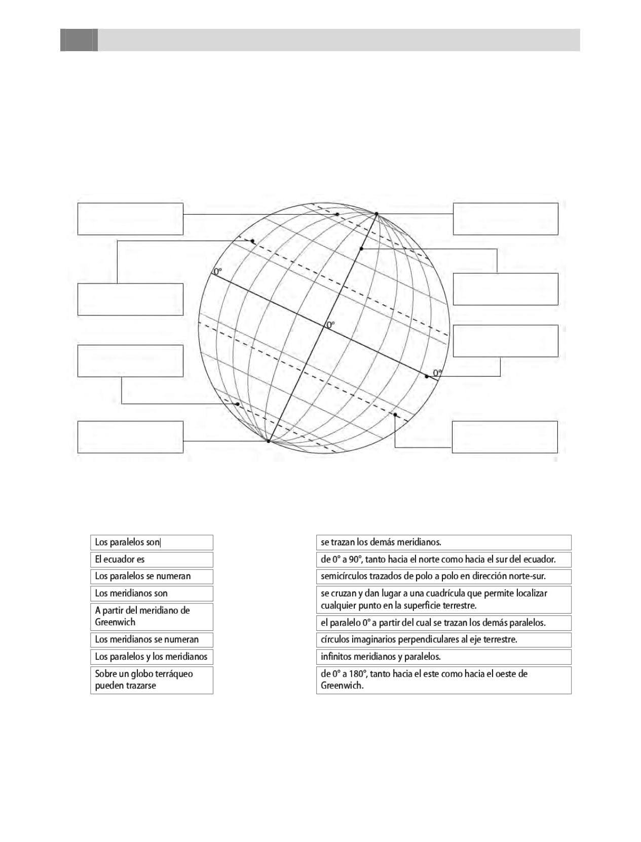 corresponda los siguientes nombres: Polo Norte, Polo Sur, ecuador, meridiano de Greenwich,